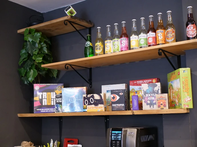 Des centaines de jeux de société dans la ludothèque du bar. Collection complète sur Myludo